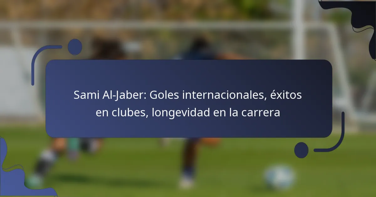 Sami Al-Jaber tuvo una carrera notable, marcada por logros significativos tanto a nivel internacional como en clubes. Anotó más de 40 goles internacionales y participó en múltiples torneos importantes, consolidando su legado en el fútbol saudí.
